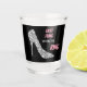 Here's the shot glass for the Bride to Be at her Bachelorette Party! It features a large faux diamond gem high heel shoe. The text, in pink and white at the side, says "LAST FLING before the RING".