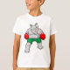 The t-shirt feels and looks great quality, a good thick cotton. It will be a little big for my son, but that means he will be able to wear it and not out grow it too soon. The print was as described on the order when personalised. True size, shape and colour T-shirt- thanks.