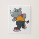 Rhino at Ice skating with Ice skates Jigsaw Puzzle