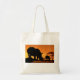 A silhouette of a rhino mother and her calf drink from the local water hole while the sun sets behind them. Computer art by Kathie Miller