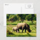 Postcard featuring mother rhino and baby rhino in the wild in Zimbabwe.