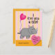 This classroom Valentine's Day card features a cartoon drawing of a cute rhinoceros with a heart balloon tied to his tail. The text on the front reads: I love you a tonne. Custom text allows you to add a child's name and custom text on the back allows you to add the child's full name, grade and teacher's name.