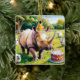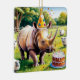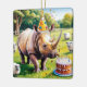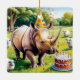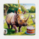 This is an AI generated image. I wanted it to be a rhino wearing a birthday hat in the english country side.