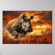 Rhinoceros Animal Wildlife Wilderness Colourful Ar Poster