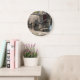 Wall Clock, 25.4 cm Round Black Wooden Frame