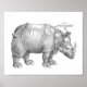 Beautiful rhinoceros woodcut print by Albrecht Durer. Create a series of small framed animal prints for your home decor. Create a row down your hallway or a grouping of 4 on a small wall. Looks great in a black frame.