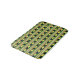 Black and yellow rhinos march across green stripes alternating with loosely “woven” stripes in African colours of red, black and green with yellow accents on this bath mat.