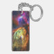 A gorgeous keychain showing the Rho Ophiuchi Cloud Complex taken by the Near-Infrared Camera (NIRCam) of NASA’s James Webb Space Telescope. The Rho Ophiuchi Cloud Complex is the closest star-forming region to Earth. It's a relatively small, quiet stellar nursery, but you’d never know it from Webb’s chaotic close-up. Jets bursting from young stars crisscross the image, impacting the surrounding interstellar gas and lighting up molecular hydrogen, shown in red.