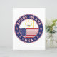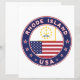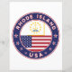 Badge of Rhode Island with flag of Rhode Island and flag of USA colours, rounded shape.