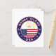 Badge of Rhode Island with flag of Rhode Island and flag of USA colours, rounded shape.