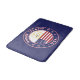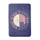 Badge of Rhode Island with flag of Rhode Island and flag of USA colours, rounded shape.