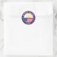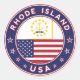 Badge of Rhode Island with flag of Rhode Island and flag of USA, rounded shape.