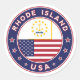 Badge of Rhode Island with flag of Rhode Island and flag of United States, rounded shape.