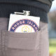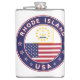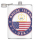 Badge of Rhode Island with flag of Rhode Island and flag of USA colours, rounded shape.