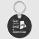 Rhode Island home is where the heart is - in mixed script and uppercase white font with the silhouette of the state and a red heart embellishment.