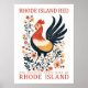 Rhode Island Red Bird of Rhode Island Travel Poster