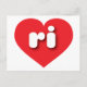 This postcard features a vibrant red heart containing the bold, white, rounded lower case letters ri, a playful abbreviation for Rhode Island, the ocean state. The reverse side of the postcard is blank, awaiting your customised text or handwritten sentiments.