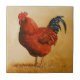 Rhode Island Red Chicken Rooster standing in the dry grass on a warm sunny summer day. Realistic artwork created from an original oil painting by equine and wildlife artist Crista S. Forest.