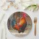 Rhode Island Red Rooster Crowing in Barnyard Paper Plate