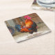 Rhode Island Red Rooster Crowing in Barnyard Square Paper Coaster