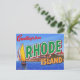 This vibrant, retro-style design captures the elite coastal charm and sailing heritage of the Ocean State. It features the classic "Greetings from RHODE ISLAND" typography set against a picturesque coastline, showcasing a colorful sailboat, a historic lighthouse, and large, iconic mansions typical of the Newport area. Perfect for fans of vintage travel posters, retro artwork, sailing, New England history, and the beautiful Rhode Island coast.