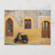 A black scooter against a yellow wall in Rhodes Town, Greece