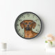 Destei's original cartoon illustration of a cute Rhodesian Ridgeback breed dog's head. The background colour is green with a decorative texture. The texture can be removed and the background colour can be changed to any other colour, if so wished. The hours are marked with numbers. The hours and minutes are shown with a dotted clock face.
