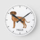 Destei's original cartoon illustration of a cute Rhodesian Ridgeback breed dog. The clock face is made of simple modern lines. There is also a personalizable text area for a name or other custom text.