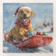 Rhodesian Ridgeback Dog in Sledge Christmas Glass Coaster