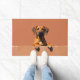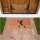 The warm terracotta clay background enhances its natural coat colour, creating a bold and welcoming look for any entryway. Designed with extra space at the top and bottom, it allows easy personalisation with names, welcome messages, or custom text—making it ideal for unique dog-themed doormats and thoughtful gifts.