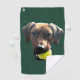 Rhodesian Ridgeback at Play Golf Towel with hand-drawn design by ArtistsQuest features a cute and playful Rhodie with a tennis ball in its mouth.