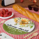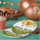 Rhododendron orange yellow flowers typography fall wedding Paper Plate. This elegant wedding paper plate showcases a beautiful rhododendron branch adorned with delicate orange yellow flowers and greenery at the upper part. The couple's names are prominently displayed in bold typography, adding a personal touch to the design. A heartfelt message of 'Thank You' is also included, expressing gratitude to the guests. Completing the look, a stylish olive green band gracefully adorns the bottom of the napkin, adding a touch of sophistication to any wedding celebration.