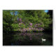 A photo of Rhododendrons on one of the islands at Roath Park Lake, Cardiff with geese in the foreground