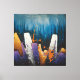 This striking abstract painting evokes the energy and rhythm of a bustling city skyline. Bold geometric shapes in rich purples, yellows, and whites stand tall against a deep, atmospheric blue background, representing towering buildings under the night sky 🌃. The vibrant orange splashes bring life and spontaneity, as if capturing the heartbeat of the metropolis 🧡. The textured surfaces of the blocks give the piece a tactile depth, creating a sense of movement and contrast between order and chaos. Perfect for those who love bold and modern designs with a touch of urban energy! 🌟💥