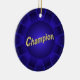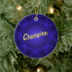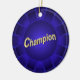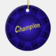 This ornament is decorated on one side with a blue ribbon rosette bearing the word "Champion" in gold coloured lettering and on the reverse with easy to customise text.
