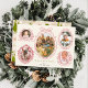 Celebrate the season in style with this handcrafted holiday photo card, featuring a central red ribbon-framed main photo surrounded by four smaller snapshots in charming red botanical frames. The elegant cream background brings warmth, while the reverse side’s delicate white floral pattern on light olive green adds a touch of elegance. Personalise with your favourite family moments and spread holiday cheer with a heartfelt touch.