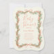 Gorgeous watercolor ribbons, bows, greenery and flowers frame this sweet baby shower invitation.