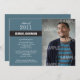 Highlight that soon-to-be grad with this announcement. Small crosses overprint a slate blue background with their name standing out in a deep black ribbon. Available in alternate colours with matching products.