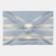 Made from an original photograph by ZoeSPEAK of a stormy sky over the ocean, the design on this Kitchen Towel looks like a pillow envelope, with silver ribbons crisscrossing the soft background shades of pale blues, greys and white. The flap of the envelope is fabric textured grey blue with a silver edge, and ribbons following the diagonal edges. Horizontal silver ribbons cross the sky background, and in the centre is a great big round button closure.