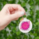 These are a durable metal and the colors are vibrant. One of the clasp came broken but received a new one quickly. Customer service was responsive and quick to resolve the issue. They are bigger than I thought but still work for my wedding. I am satisfied with the print quality and surprised at how vibrant the colors are.