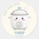 Label sticker with a cute rice cooker with a face and the kawaii text "I love rice". For all who love their ricecooker and rice.