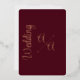 A beautiful solid colour Rich Burgundy wedding invitation with a rose gold coloured front.