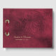Elegant wedding guest sign in book done in a beautiful rich red wine colour with graphics of an embossed looking Fleur design and ribbon and metal looking binding. Personalise the custom text to suit your wedding needs. Lovely keepsake.