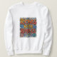 A vibrant design features the phrase "Riches with Riddles" in a playful, rounded font. The text is surrounded by a colourful array of abstract geometric shapes and symbols, arranged in a symmetrical pattern. The overall design is bold and eye catching.