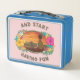 This is a standard metal lunchbox that appears to work just fine. We designed this box ourselves with an uploaded photo and custom text on the front and back. It looks absolutely beautiful except the front of the lunchbox is not centered like it shows in the photo. The print borders don't align with the inset flat part of the box where the preview photo online showed it perfectly centered in there. The back looks nice and centered though.