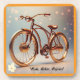 A vintage bicycle with a golden touch, embodying freedom and nostalgia. Its flowing frame and wheels suggest effortless movement, set against a soft, textured backdrop that evokes the joy of a leisurely ride. "Original Image was generated by Meta AI. AI generated artwork. Licensed under CC BY-SA 4.0."