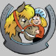 A nice design for anyone who likes riding. This one has a girl and her horse frame inside a horseshoe. The girl and horse are done in a bit of a cartoon style. This rider and horse design looks great on this girls hoodie. Perfect for yourself or as a gift