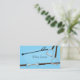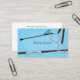 This business card has a jumping bat, snaffle bit with laced reins, and a pair of stirrups—classic symbols of English horsemanship. The cute illustrations and bright blue colour makes this design ideal for businesses that cater to kids and youth.
