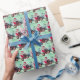 Wrap your gifts this holiday season with this wrapping paper featuring Santa Claus riding on a motorcycle through the snow!