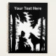 This planner is black silhouette on white of Little Red Riding hood kneeling in the woods picking flowers under trees talking to the wolf. Customise your text on the front with the template.